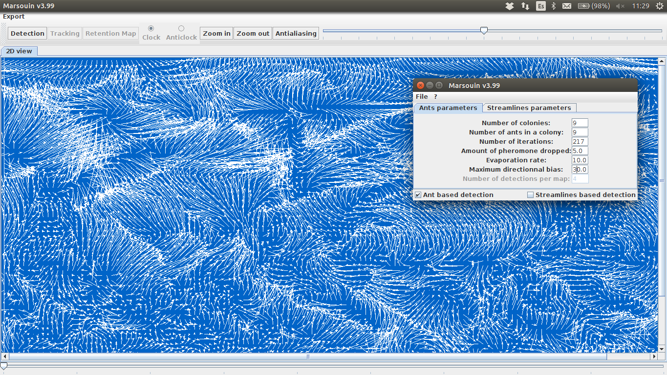 Marsouin is a software written in Java that accepts as an input NetCDF files containing matrices of stream vectors and that performs an automatic detection of potential retentive structures using evolutionary algorithms such as ant colony algorithms or Genetic Programming.